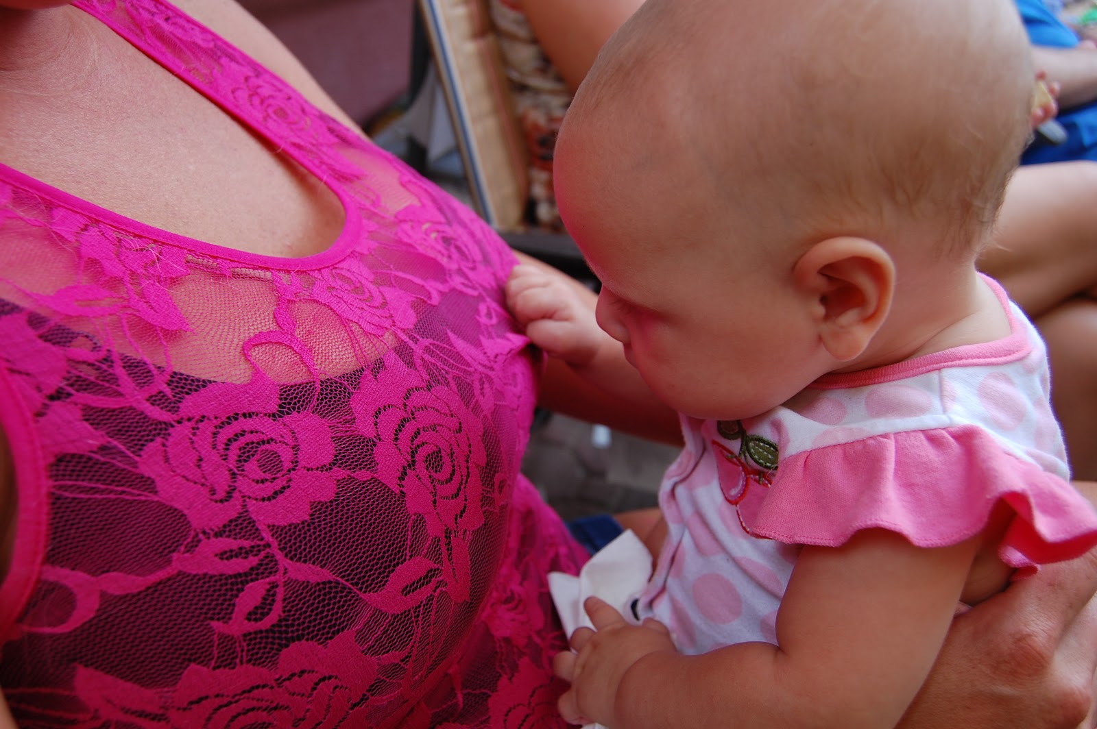 Once the staff leaves the room, and I get to hold her, we are all amazing how pink she is and she makes herself heard with all sorts of baby coos and grunts. I let her nurse and realize that she has a little barracuda latch. I am lucky she is not my first baby! My mom pulls out the blanket I made her and we wrap her up and everyone gets to hold her. Just like that, we have a baby girl.